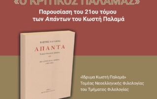 Ανατυπώθηκε πρόσφατα από το Ίδρυμα Κωστή Παλαμά ο εξαντληθείς Α΄ [...]